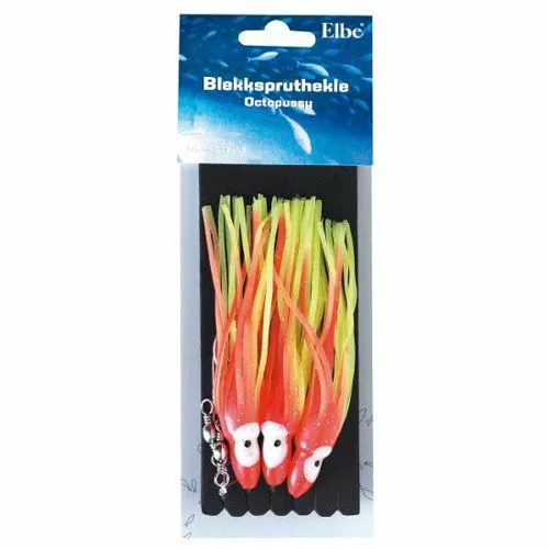 ELBE BLEKKSPRUTHEKLE OCTOPUSSYElbe Blekkspruthekle Octopussy. Hekle med 3 kroker beregnet til torsk, lyr, sei og lange. Storfisk er ikke uvanlig med denne type hekle. 0,80 mm sene og krok nr. 6/0. Lengde 120 cm.Hekle med 3 krokerBrukes på stang eller fiskeharpeBeregnet for torsk, lyr, sei og lange3 stykk Krok nr. 6/0Lengde 120 cm0,80mm diameter line