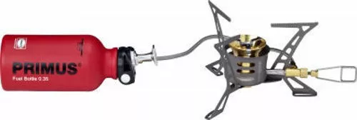 Primus OmniLite Ti med BrenselsflaskeOmniLite Ti er basert på samme teknologi som den prisbelønte OmniFuel og er konstruert for å håndtere krevende situasjoner og miljøer. Denne ovnen er like pålitelig og robust, men mindre, lettere og mye mer drivstoffeffektiv. Effekten er tilpasset den nye generasjonen drivstoffeffektive gryter med varmeveksler, som Primus Eta Pots™. Frontruten og grytestøttene er laget av titan, noe som gjør ovnen veldig stabil og lett. OmniLite Ti fungerer med gass, bensin/bensin, diesel, parafin/parafin og til og med flydrivstoff. Ved hjelp av den separate kontrollknappen kan du justere flammen til den varmen du ønsker, selv om du har på deg hansker.Vekt 239, med pumpe 341 gram