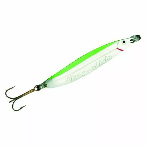 REMEN MØRESILD 10G MATT/GRØNNTradisjonsrike Møresilda fra Remen Slukfabrikk hører hjemme i enhver slukboks, uansett hvor det skal fiskes, og er antagelig Norges mest solgte skjesluk. Dette er en skikkelig allrounder som passer perfekt til alt fra lett innlandsfiske til grovere sjøfiske etter torsk og storsei. Til laks- og sjøørretfiske er Møresilda for mange uten tvil førstevalget.• Vekt 6g• Lengde 48mm• Krok VMC 9617 BZ #7Testvinner:I utgave 09/13 av sportsfiskemagasinet Alt om Fiske vant Møresilda Holographic stor sjøørret-test. I tillegg fanget den flest av andre fiskeslag. 30 fiskere hadde vært i sving for å teste 21 utvalgte sjøørretsluker. Til sammen var de på 213 fisketurer og fanget 309 sjøørret. Møresilda fanget flere sjøørret enn de to neste på resultatlisten til sammen. Hele 64 sjøørret ble landet. Nummer to på listen fanget 27. Også største sjøørret i testen på 3,9 kilo ble fanget på Møresilda. Når det gjelder sikre napp utklasset Møresilda de andre med hele 82 sikre napp. Neste på listen hadde 32.Tradisjonsrike Møresilda fra Remen Slukfabrikk hører hjemme i enhver slukboks, uansett hvor det skal fiskes, og er antagelig Norges mest solgte skjesluk. Dette er en skikkelig allrounder som passer perfekt til alt fra ørretfiske til grovere sjøfiske etter torsk og storsei. Til laks- og sjøørretfiske er Møresilda for mange uten tvil førstevalget. I dag eksporteres Møresilda gjennom Rapala-systemet til en mengde land over hele verden. Svart forniklet VMC® BN-krok. Ekstra kraftig 2X-krok på størrelsene fra 27g og oppover.