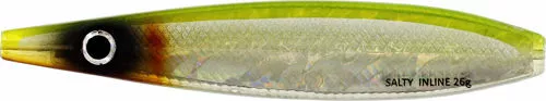Westin Salty Inline 18g 3D Yellow Ayu 8cmBasert på den bestselgende Westin-sluken Salty, har denne Inline-sluken alt. Den vil kaste langt selv mot den hardeste vinden, den kan fiskes raskt eller sakte, den kan brukes på både grunt og dypt vann, og den har en svømmeaksjon som appellerer til ørret og havabbor til alle tider av året. Salty Inline imiterer mange agnfisker på menyen til sjøørret og havabbor, og det innebygde systemet sørger for en betydelig bedre kroking av fisken. Teflonrør inniBlyfritt konseptMateriale: ABS plast / sink